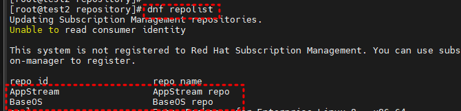 6. dnf repolist 로 두 개의 레포가 정상적으로 출력되는지 확인