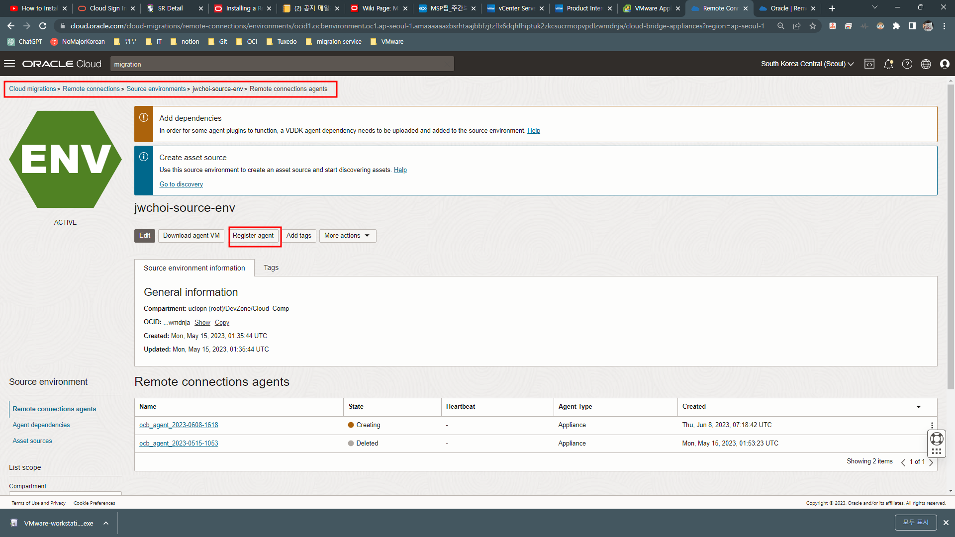 오라클 doc을 읽어보니 웹콘솔창이 띄워졌으면( source environmet에 Remote Agent Appliance를 등록할 수 있다고 한다.