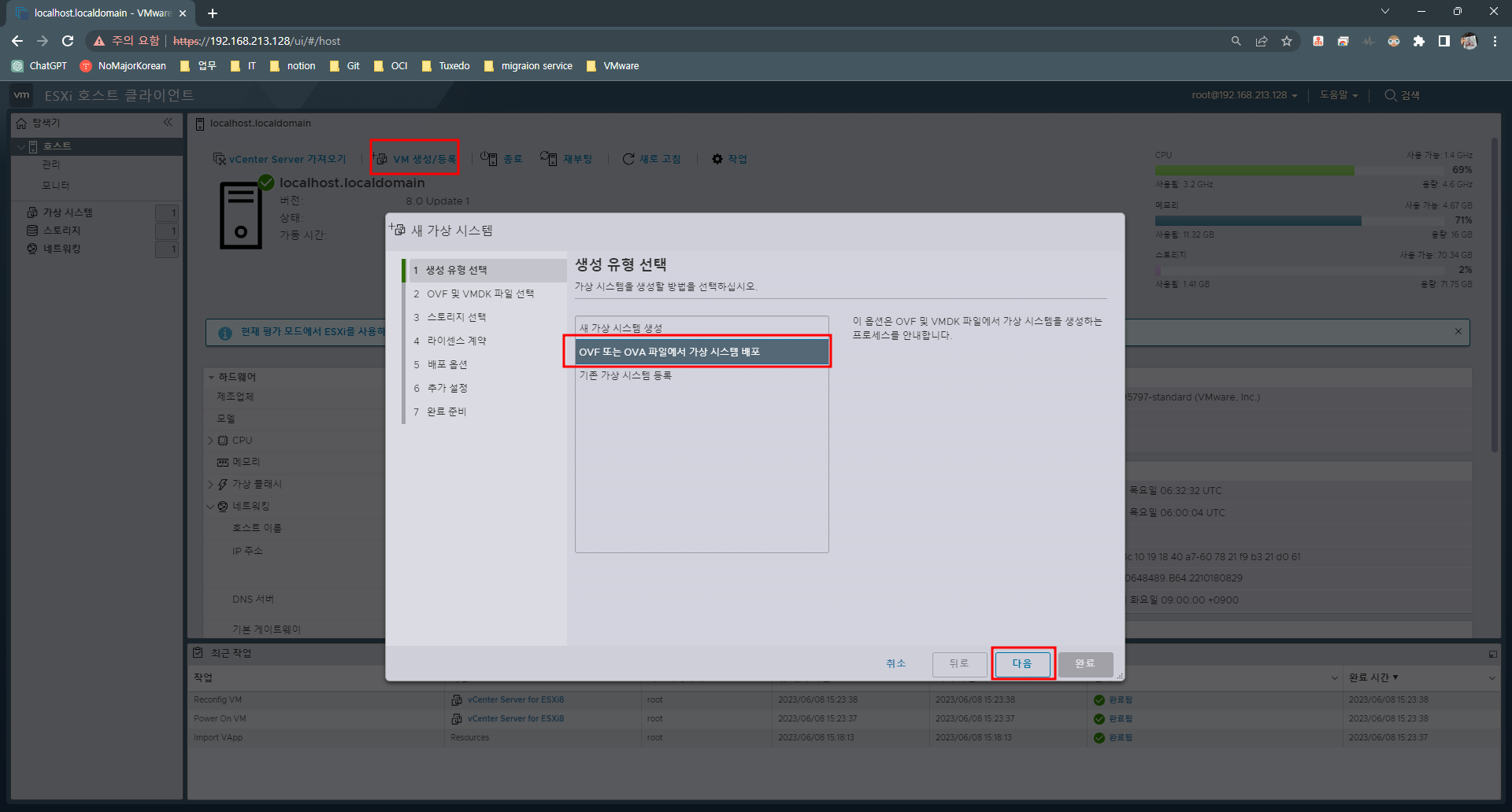 다운로드 받은 OVA 파일로 ESXi 서버내에 VM을 생성하는 절차 입니다.