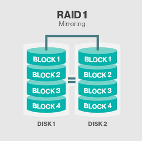 - 최소 2개의 디스크가 필요하며 디스크의 데이터를 페어링된 다른 디스크에 복제하여 저장한다.