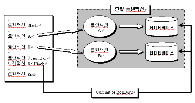 서로 다른 N개의 데이터베이스에 대한 트랜잭션 작업을 하나의 트랜잭션으로 묶어 처리 할 수 있는 데이타 무결성을 보장합니다