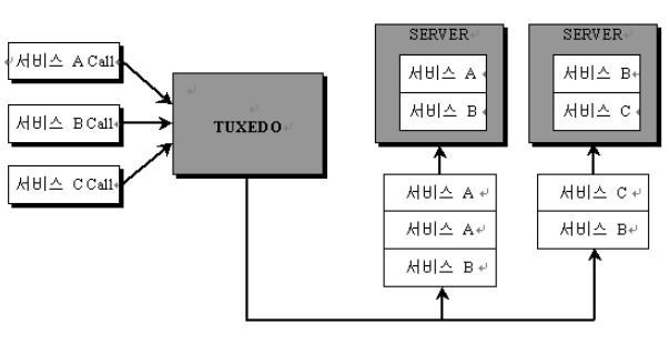 BEA TUXEDO 시스템의 기본적인 기능으로 클라이언트가 서비스를 호출할 경우 서비스가 위치한 시스템과 서비스가 속한 실행 파일을 찾는 기능입니다. 사용 가능 시스템과 사용 가능 프로그램을 위한 테이블을 유지하고 관리 함으로써 클라이언트는 서비스에 대한 정보를 유지할 필요 없이 호출할 서비스를 선택하고 파라미터만 넘겨 줌으로써 작업을 수행할 수 있습니다.