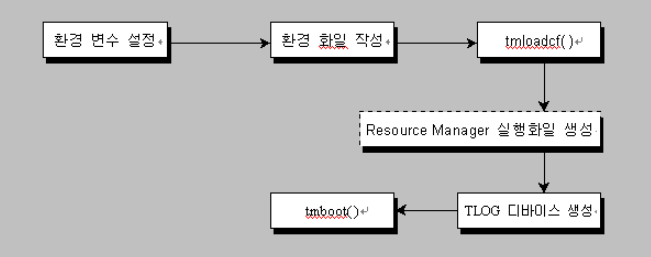 6. tmboot() 명령을 이용하여 System/T, 리소스 관리자, 서버 등을 기동합니다.