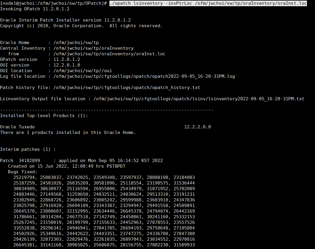 ./opatch lsinventory -invPtrLoc /ofm/jwchoi/sw/tp/oraInventory/oraInst.loc