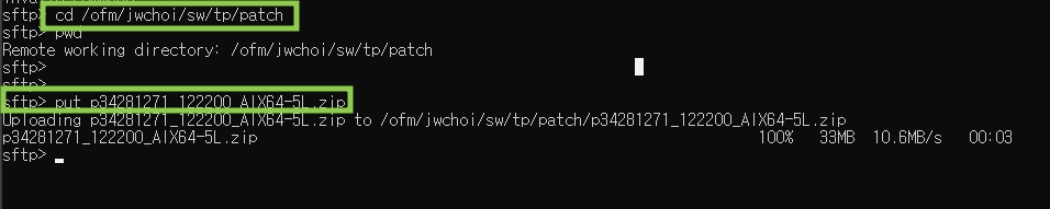 3. 받은 zip 파일을 AIX 서버로 옮겨야합니다. 이 때 저는 SFTP로 전송해주었습니다.