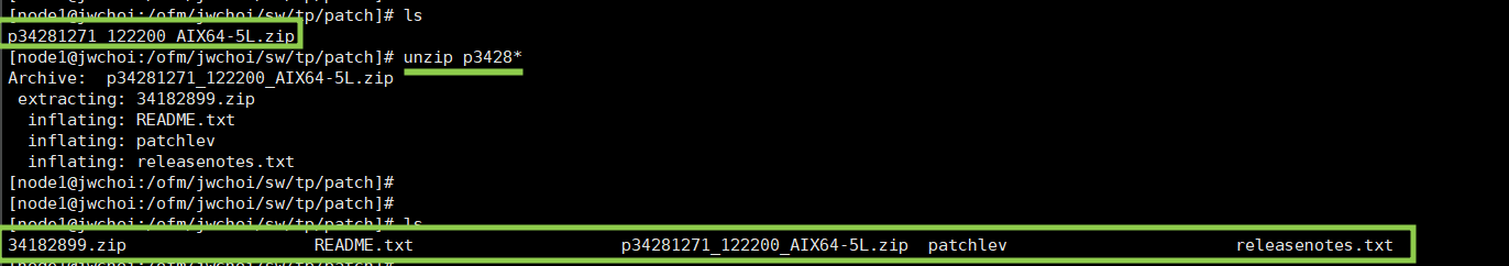 받은 zip파일을 unzip 해주면 .zip 패치파일이 생깁니다.