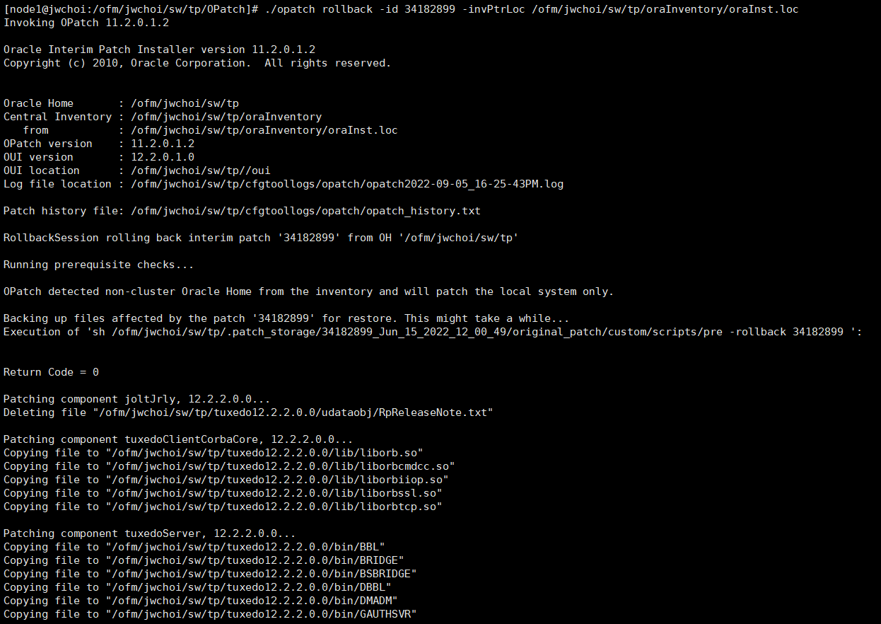 ./opatch rollback -id 34182899 -invPtrLoc /ofm/jwchoi/sw/tp/oraInventory/oraInst.loc