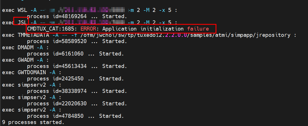 | [Tuxedo] CMDTUX_CAT:1685: ERROR: Application initialization failure (0) | 2022.12.05 |