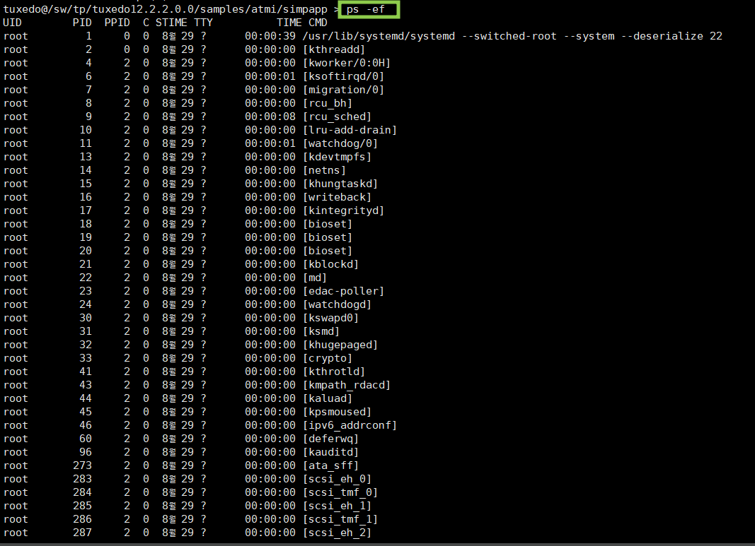 정확하게 내가 원하는 프로세스를 죽이기 위해서는 프로세스를 확인해야겠죠? 이 때는 ps -ef 또는 ps -efc 명령어를 사용합니다.