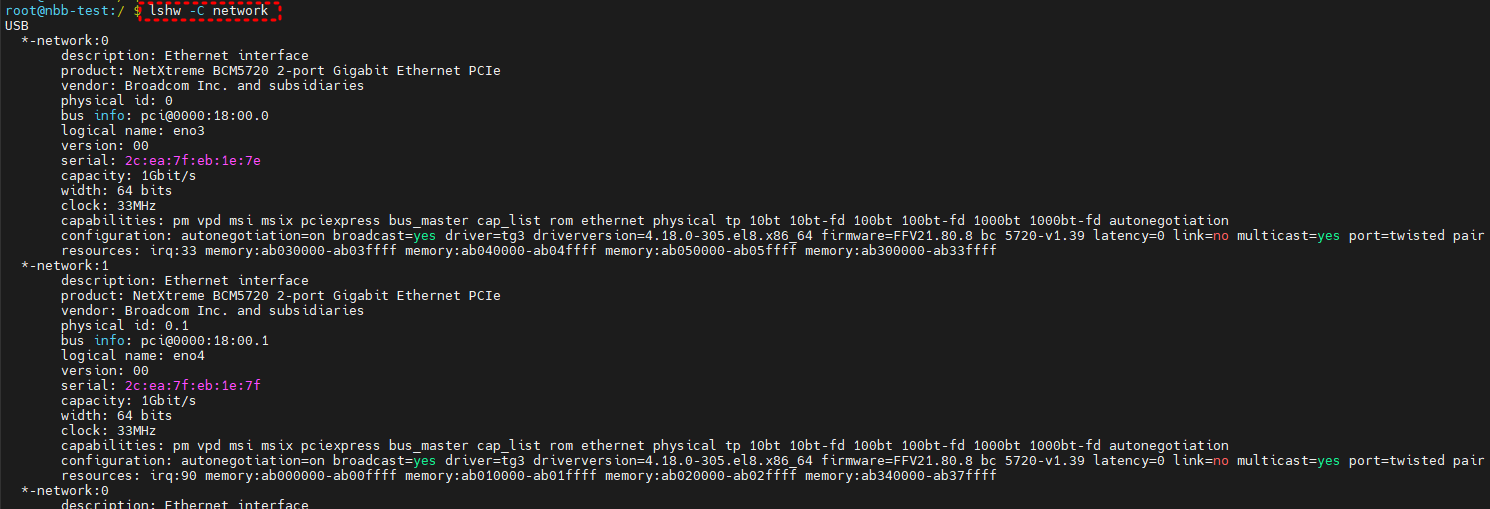 네트워크 인터페이스의 ID를 확인하기 위해서는 lspci -nvv를 사용할 수 있다.