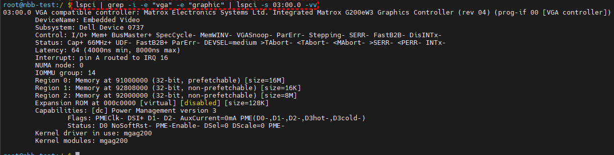-> lspci | grep -i -e "vga" -e "graphic" | lspci -s <bus no>:<device no> -vv