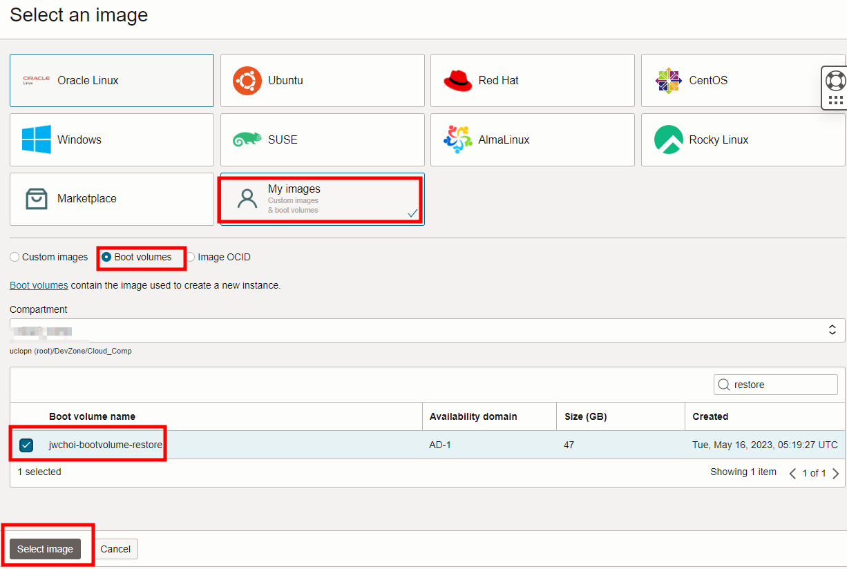 8. Boot Volume으로 새 컴퓨트 인스턴스 생성하기