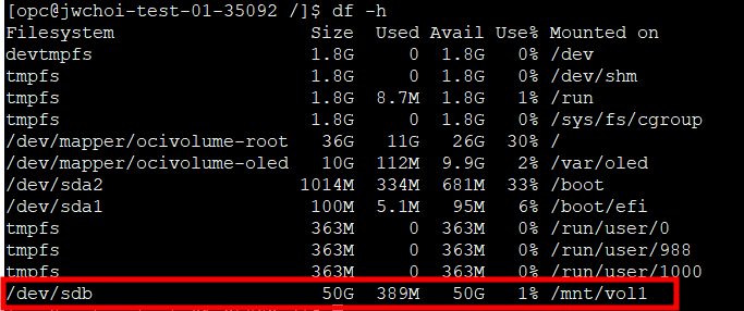 1. 컴퓨트 인스턴스에 SSH로 접속한 후 Block Volume을 포맷한다.
