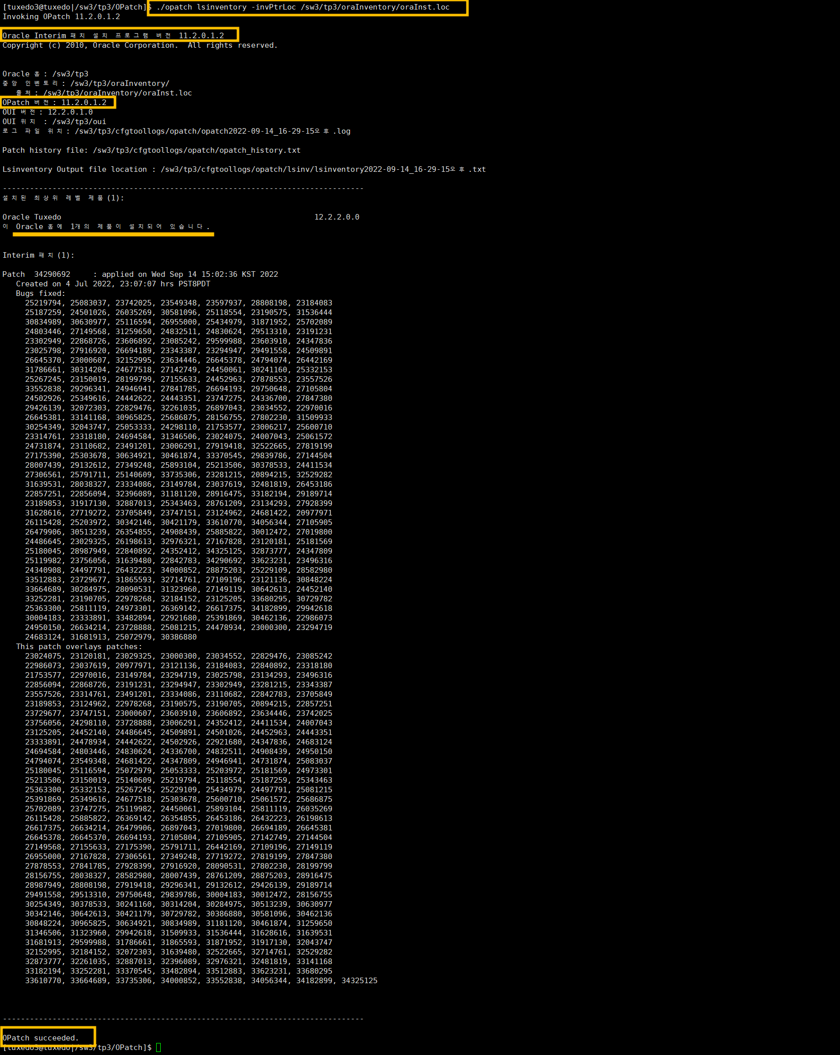 UNIX서버상에서 패치확인 명령어는 lsinventory 입니다.