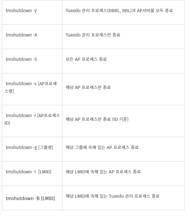 tmshutdown 명령어는 tuxedo 기동을 종료 시에 사용