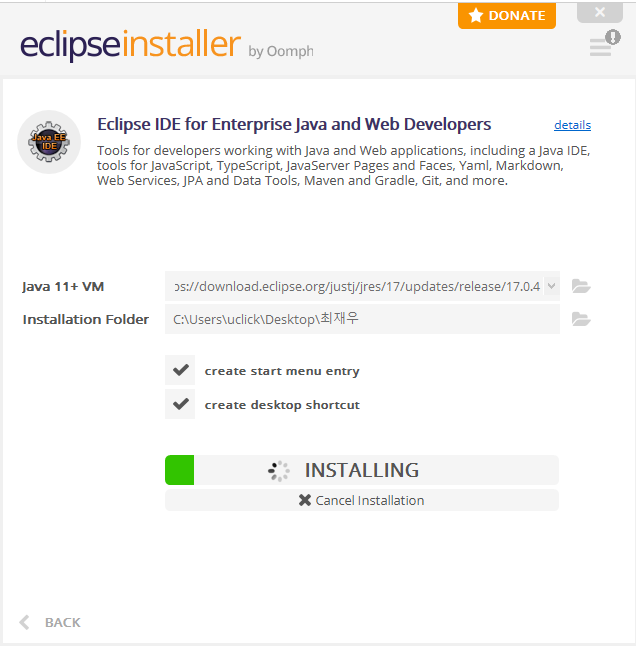 파란색 : 이곳에 이클립스가 설치된다는 경로 입니다.