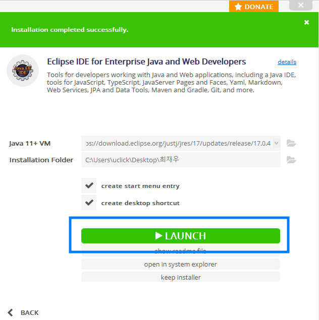 5. 설치가 완료되었습니다. LAUNCH 를 클릭해주세요.