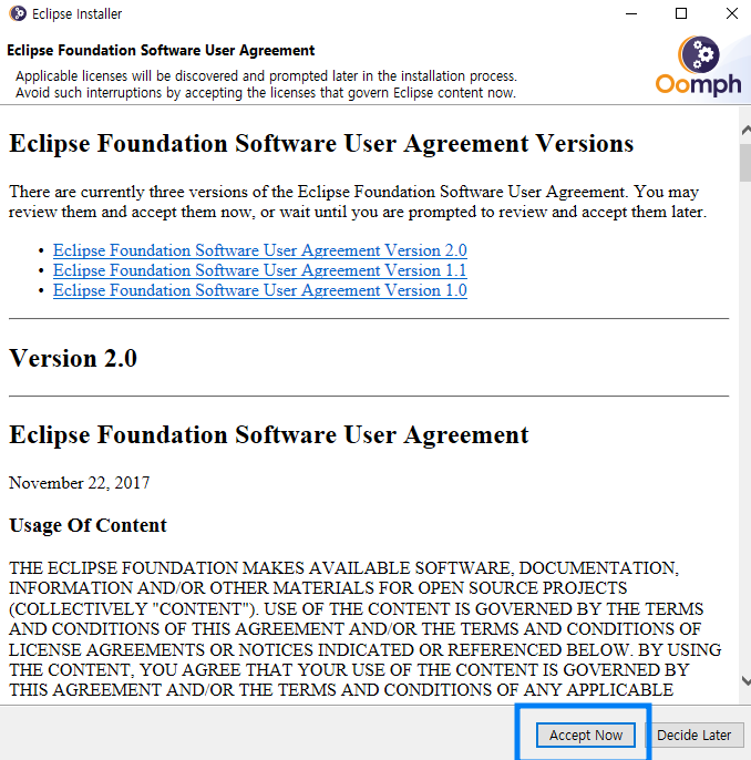 4. install을 누르면 다음 단계가 나옵니다. Accept Now 해주세요.