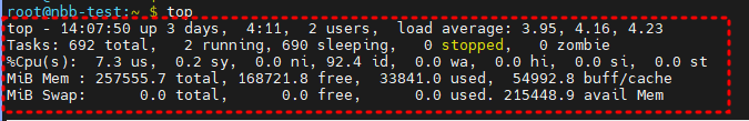 - Load Average : CPU Load(CPU가 사용하는 작업의 양)의 이동 평균을 표시 (1분, 5분, 15분에 대한 평균값)