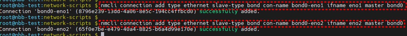 $ mncli connection add type ethernet slave-type bond con-name [connection-name] ifname [interface-name] master [bond-name]